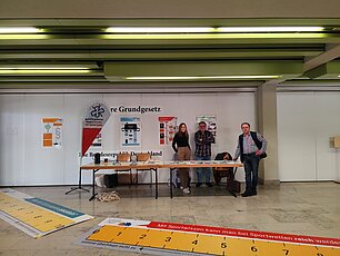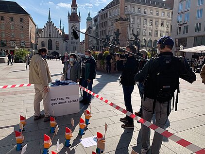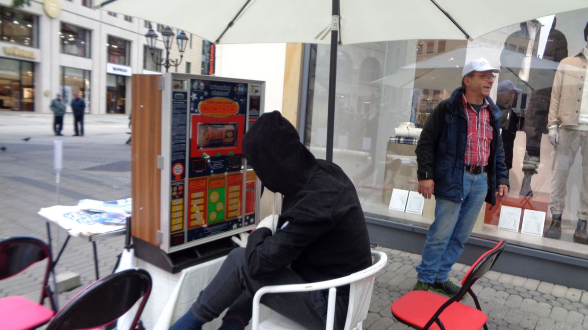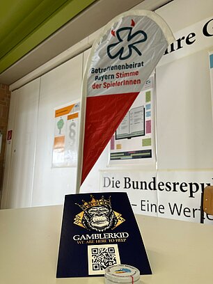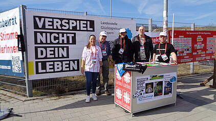 Dort wurde die Riesenzeitung der Landesstelle Glücksspielsucht in Bayern ausgestellt, und in Flyerform verteilt. Auch wurde eine Spielhallenszene aufgebaut, die zeigt, wie schnell man sein Geld am Spielautomaten verlieren kann.