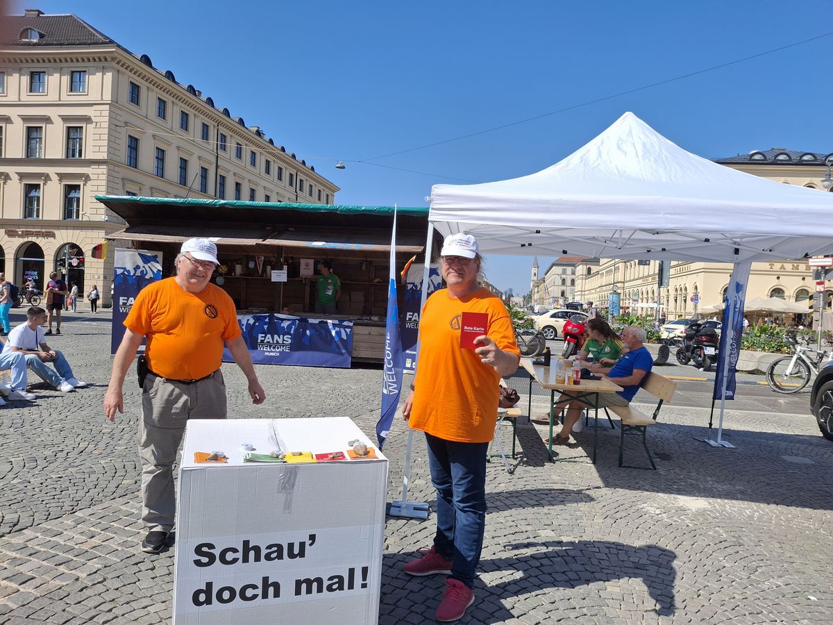 Zwei Mitglieder unseres Betroffenenbeirats und des Bundesverbandes Glücksspielfrei e.V. informierten an Ihrem Infostand auf dem Odeonsplatz in München über die Gefahren der Sportwetten und der Sportwettenwerbung.