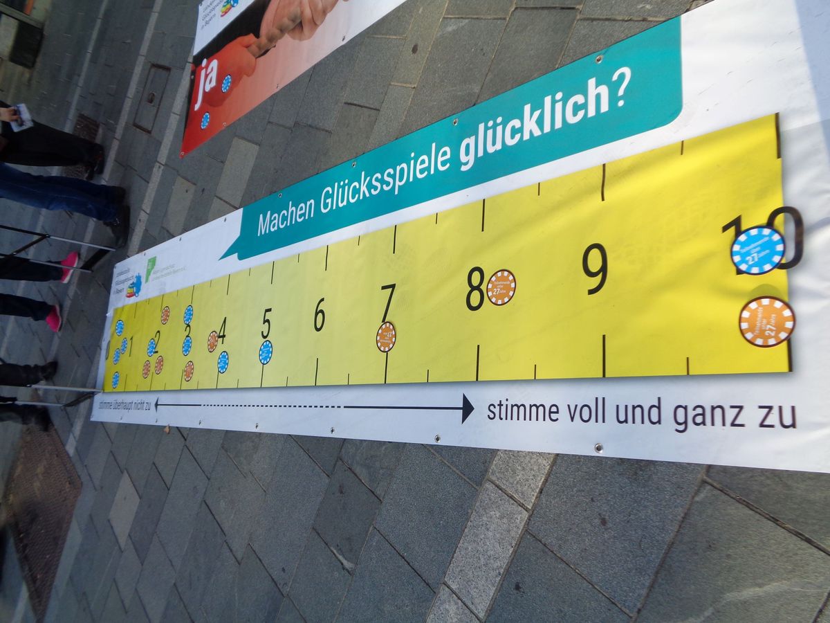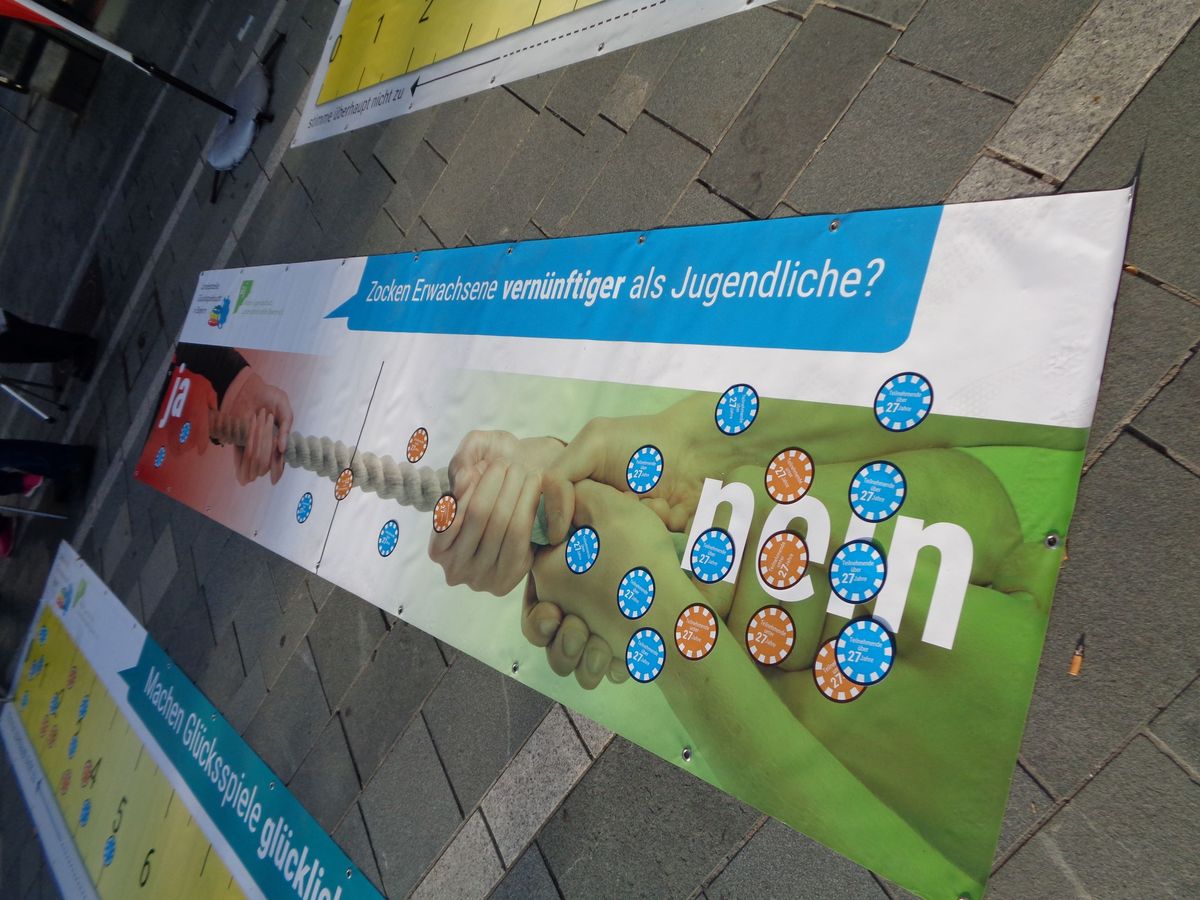 Zusätzlich hatten wir Schilder mit Fragen zum Glücksspiel und zur Glücksspielsucht aufgestellt.