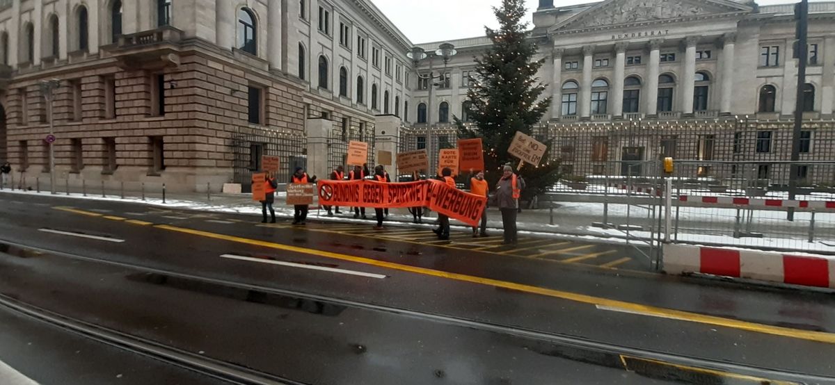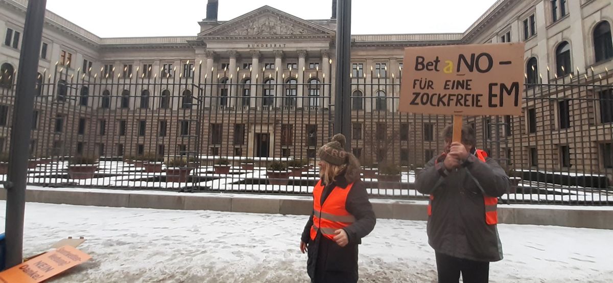 06.12.2023: Demonstration gegen Sportwettenwerbung vor dem Bundesrat in Berlin