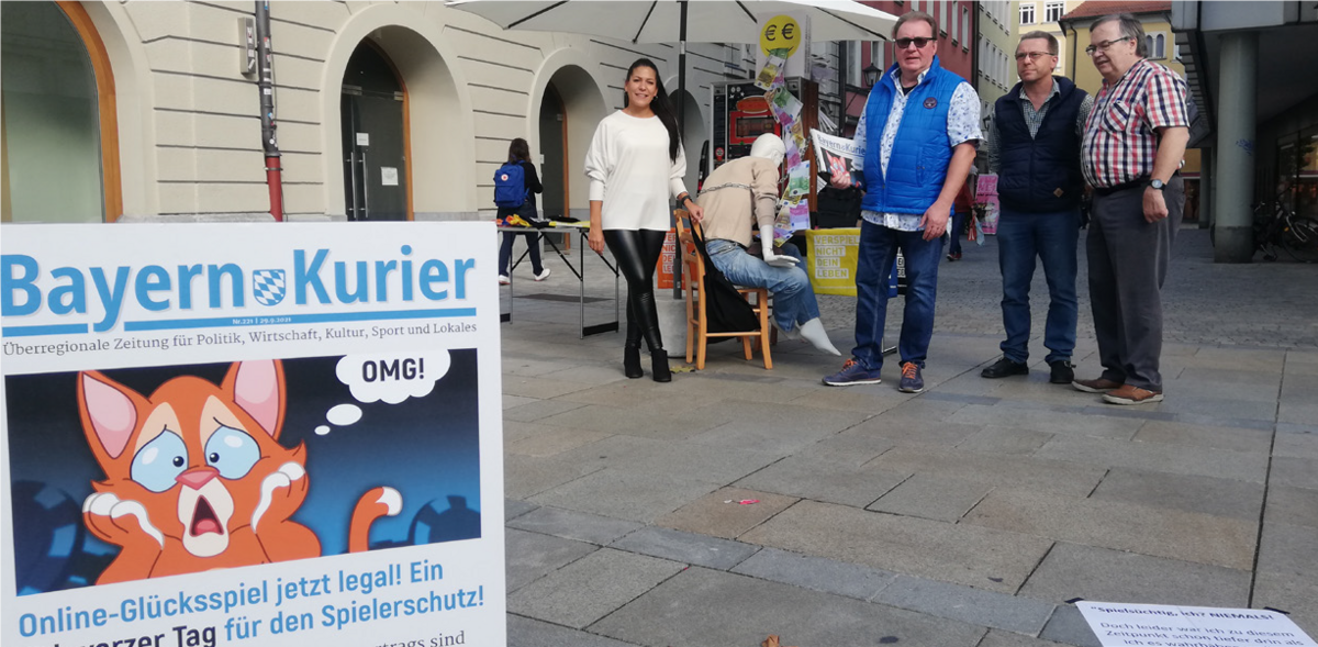 Am diesjährigen bundesweiten Aktionstag gegen Gücksspielsucht nahmen wir mit einer Aktion in Regensburg mit einem Informationsstand über die Gefahren des Glücksspiels und besonders auch über die Gefahren von Sportwetten teil.