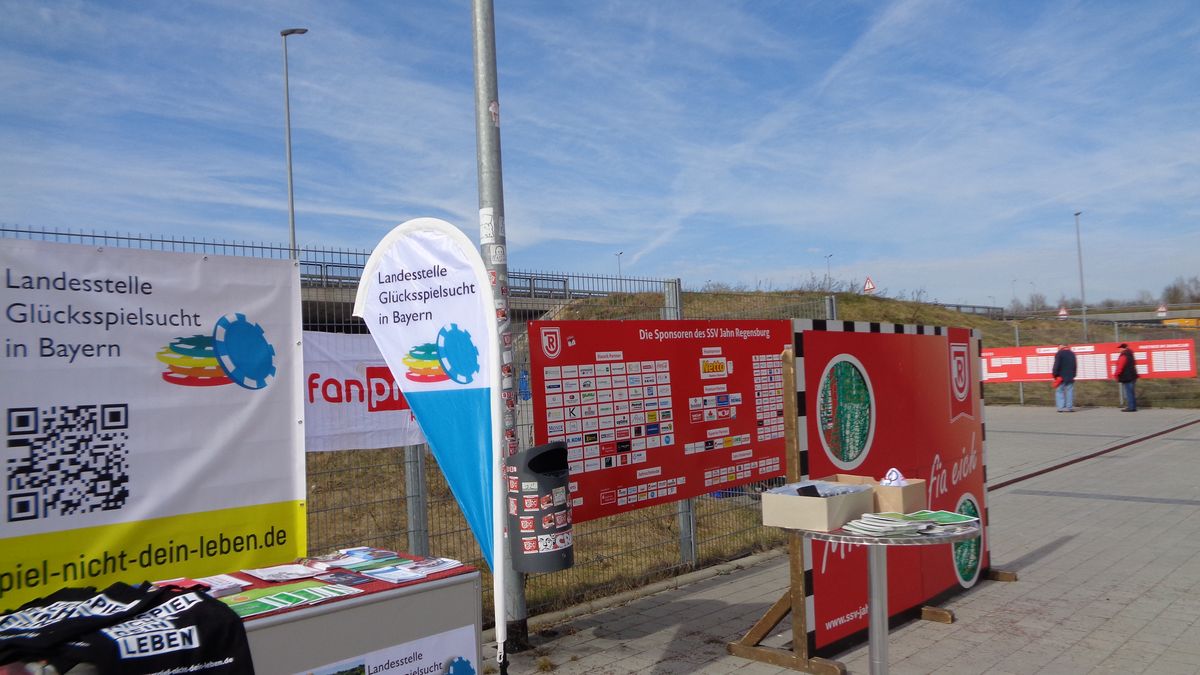 Am 18.03.2023 fand beim Fußballverein Jahn Regensburg vor dem Jahnstadion eine Aktion gegen Glücksspielsucht statt. Gleichzeitig spielte Jahn Regensburg gegen den SC Paderborn und gewann das Spiel mit 1:0. Der Betroffenenbeirat Bayern Stimme der SpielerInnen wurde von der Regensburger Caritas-Fachstelle für Glücksspielsucht eingeladen, sich an der Aktion zu beteiligen. Auch die Landesstelle Glücksspielsucht in Bayern war anwesend. Die Resonanz der Fußballfans war gut. Kinder und Jugendliche hatten sehr viel Spaß, sich an der aufgestellten Torwand auszuprobieren.