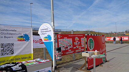 Wir bedanken uns beim AWO-Fanprojekt München, das uns die Aufstellung unseres Infostandes ermöglicht hat. Unsere Ausstattung wurde von der Landesstelle Glücksspielsucht in Bayern zur Verfügung gestellt. Dafür recht herzlichen Dank.
