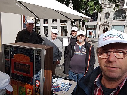 Wir hatten in Nürnberg am Ludwigsplatz gegenüber des in Nürnberg wohlbekannten Brunnens "Ehekarussel" einen Infostand mit ausliegendem Infomaterial zur Glücksspielsucht aufgebaut.