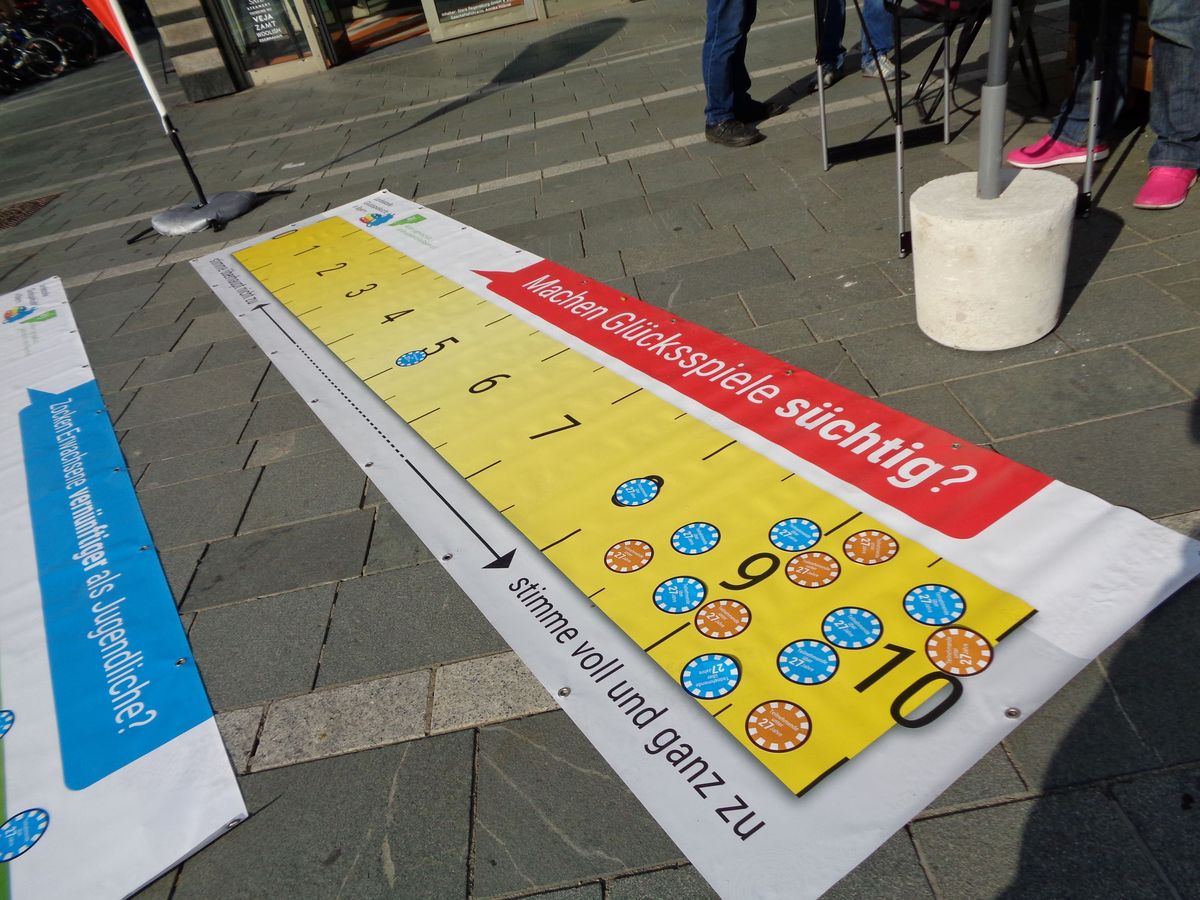 Um auf das hohe Suchtpotenzial von Glücksspielen aufmerksam zu machen, haben sich die 16 Bundesländer darauf verständigt, einmal im Jahr, jeweils am letzten Mittwoch im September, den „Bundesweiten Aktionstag gegen Glücksspielsucht“ durchzuführen. Mit unzähligen Aktionen im gesamten Bundesgebiet gehen Mitarbeitende der Suchthilfe und Ehrenamtliche auf die Menschen zu, informieren sie im persönlichen Gespräch über die Gefahren, die von der Teilnahme an Glücksspielen ausgehen können, verteilen Informationsmaterial und überraschen mit ungewöhnlichen Aktionen.